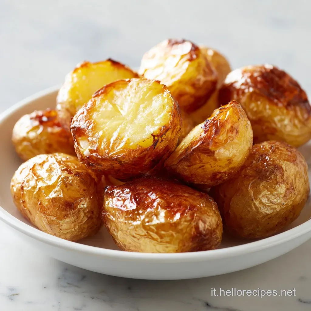Sbollentarle e scuoterle vigorosamente. Dopo averle sbollentate in acqua con un pizzico di bicarbonato, scuotetele nello scolapasta per creare uno strato superficiale di amido "rovoso". Questo strato reagisce con il grasso caldo in forno creando la crosta desiderata.